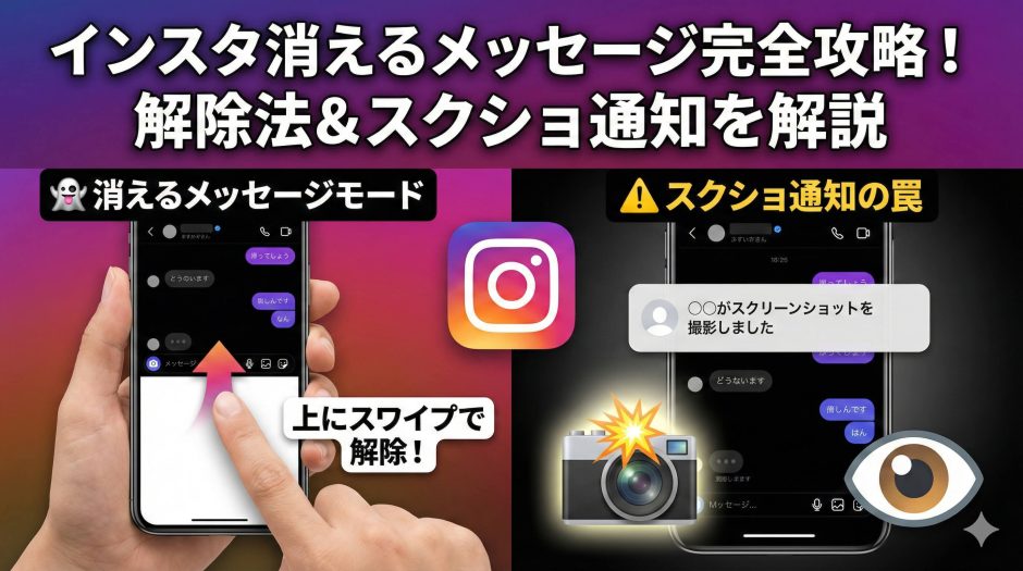 本記事では、インスタの「消えるメッセージ」機能の正体について徹底解説します。チャット全体を秘密にするモードと、写真単体を消す機能の決定的な違い、そして絶対に知っておくべき「スクショ通知」のリスクまで、最新の仕様を正しく理解して使いこなしましょう。